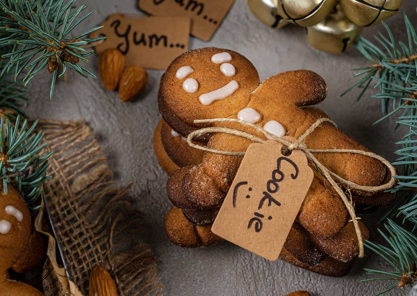 - Раскатать на подпыленной мукой поверхности, вырезать с помощью форм человечков и выпекать партиями при 200°С по 8-10 минут.