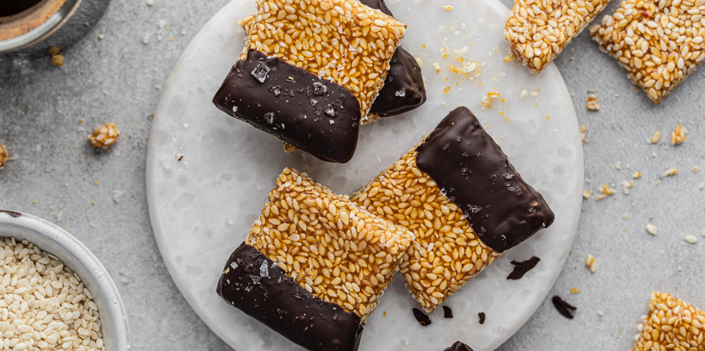 - Сразу всыпьте кунжут и перемешайте. Масса будет горячей и пластичной, но будьте аккуратны, карамель быстро застывает.