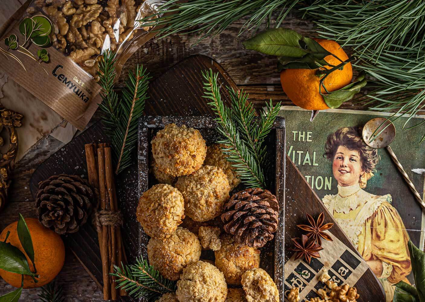 - Каждый шарик обваляйте в оставшихся размолотых орехах и выпекайте при 180°С С около 12 минут.