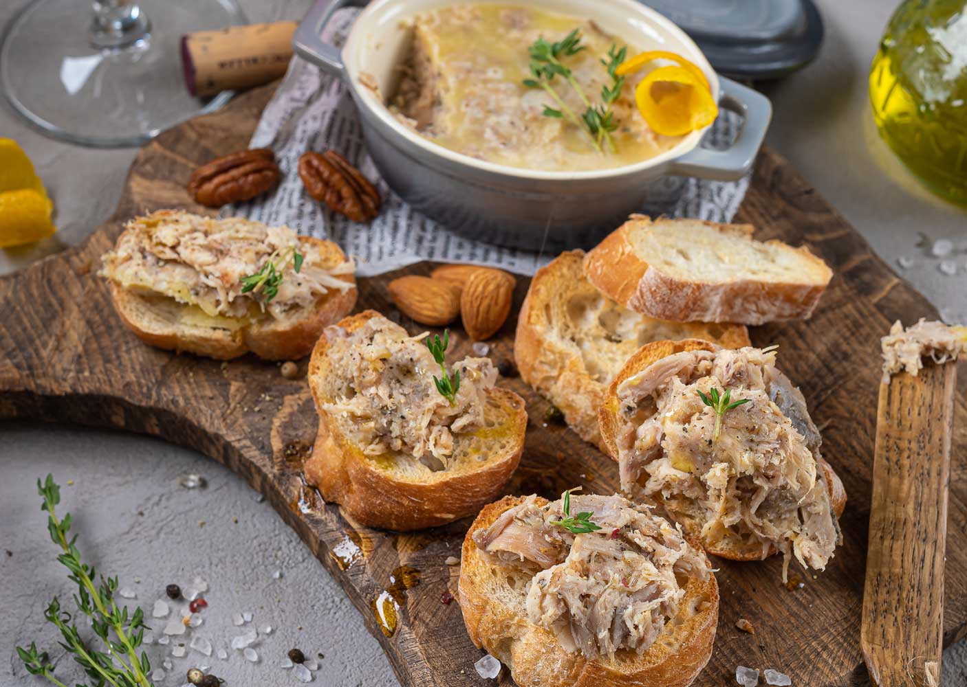 - Переложить получившийся рийет в банки и залить растопленным сливочным маслом.