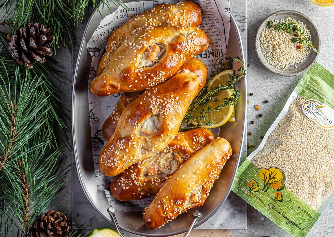- Потом смажьте яйцом, посыпьте кунжутом и выпекайте около 15-20 минут при 180°С.