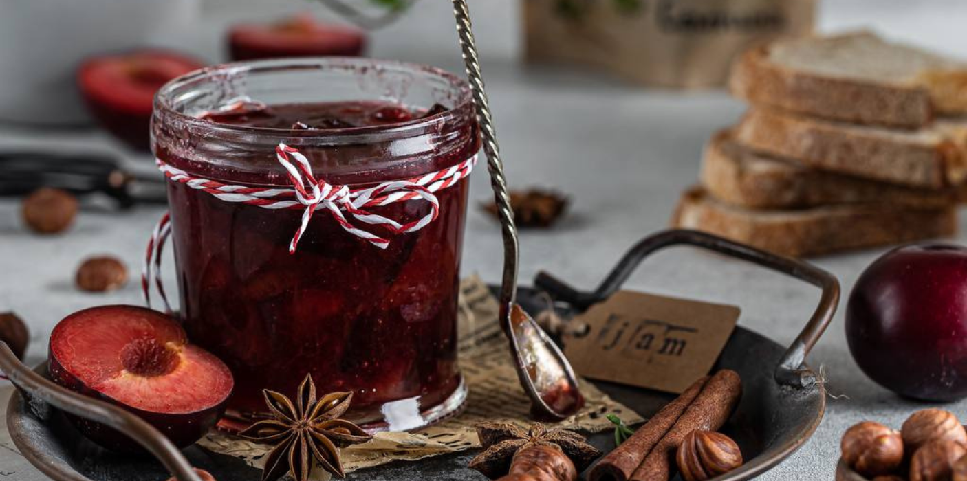 - Поставьте сливы на огонь и доведите до кипения, снимите пену и добавьте специи и чернослив.
