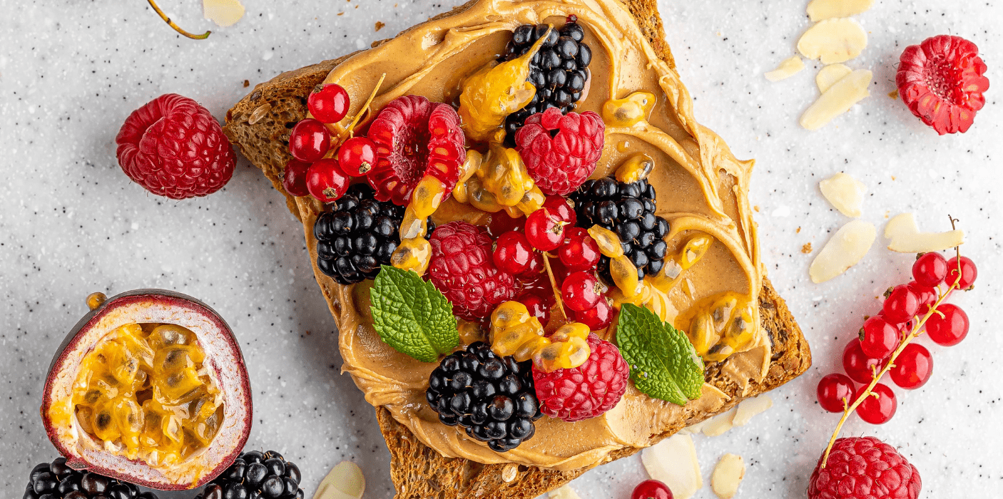 - На хлеб намажьте арахисовую пасту.