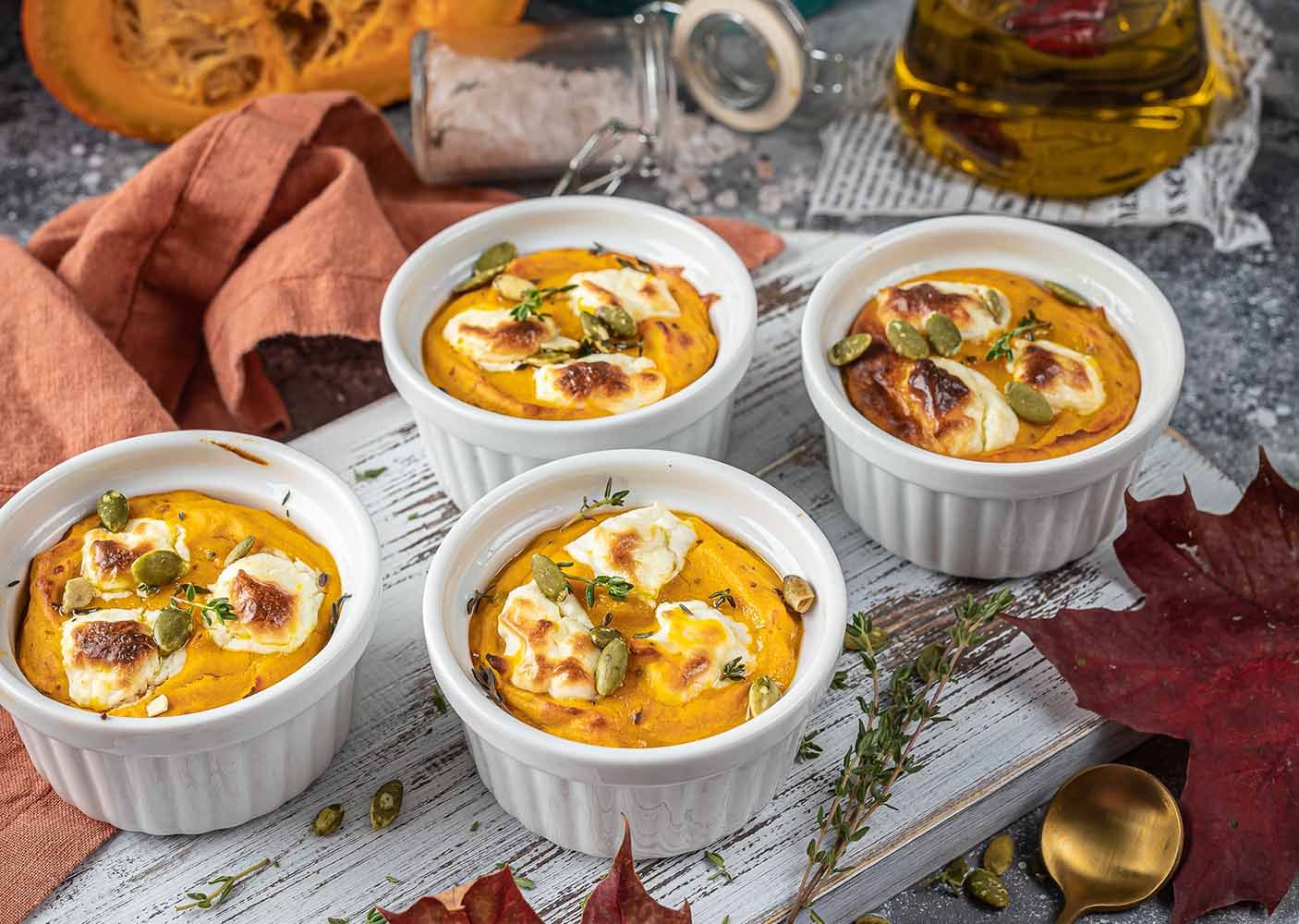 - Смоченной в холодной воде чайной ложкой положить на каждое суфле кусочки сливочного сыра и слегка их вдавить.